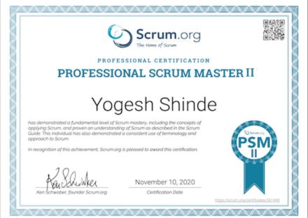 On successful qualification of Certification Exam, candidates can downoad PSM- II Certificate and badges from your account.