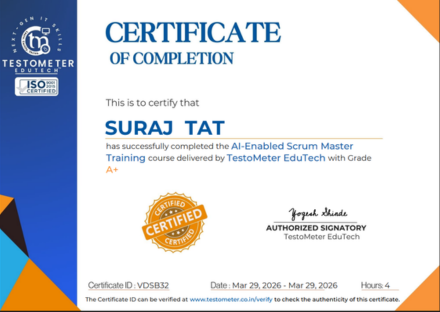 The AI-Enabled Scrum Master Training helps professionals become future-ready Agile leaders by combining Scrum practices with the power of AI. Learn how to use AI for blocker prediction, sprint analytics, team coaching, automated reporting, and smarter stakeholder communication through live hands-on training and real Scrum scenarios.