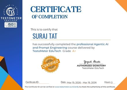 The Professional Agentic AI & Prompt Engineering Course helps professionals go beyond basic AI usage and build smart, goal-driven AI workflows for real business scenarios. Learn prompt engineering, AI agent design, workflow automation, Agile integration, and ethical AI usage through live hands-on training.